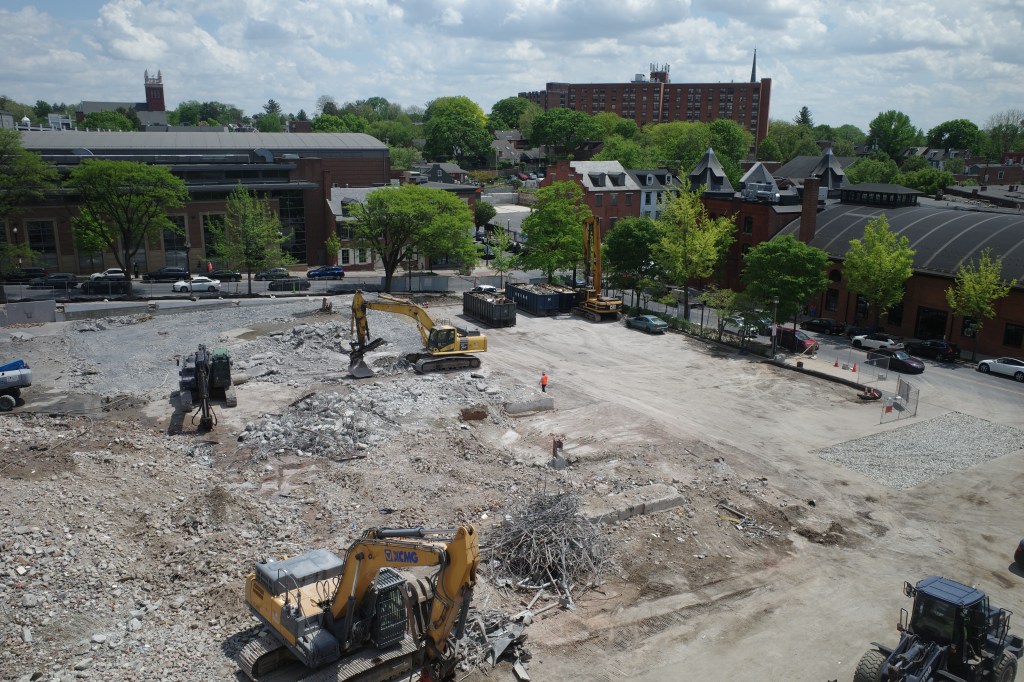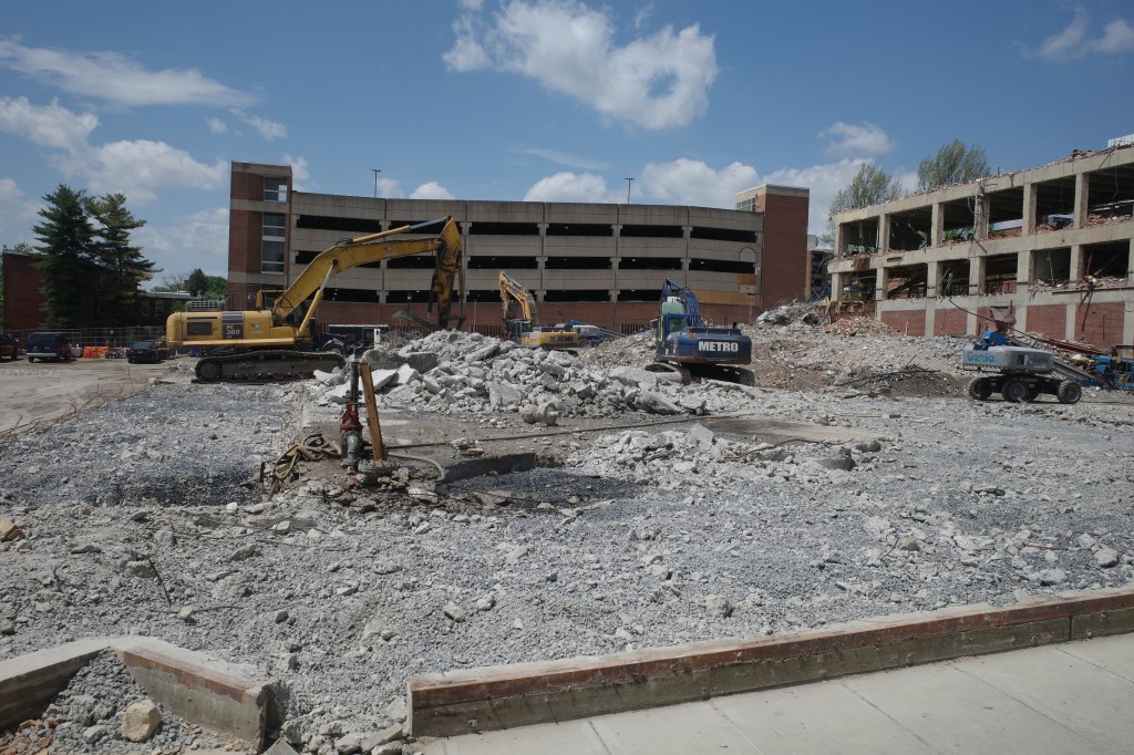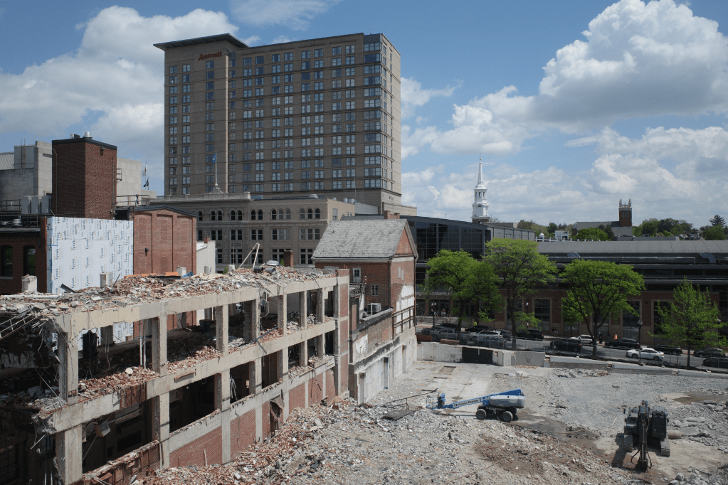 Demolition nears completion at 17 W Vine St, the future site of Mosaic, since commencing work in late January 2025. Mosaic is a planned 20-story residential tower by Willow Valley Communities, dedicated to 55+ adult living.