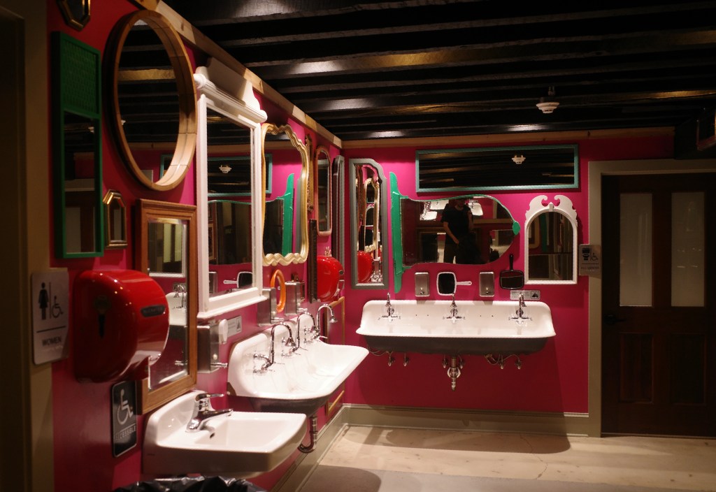 Mirrors in the downstairs bathroom were all donated by the local community.