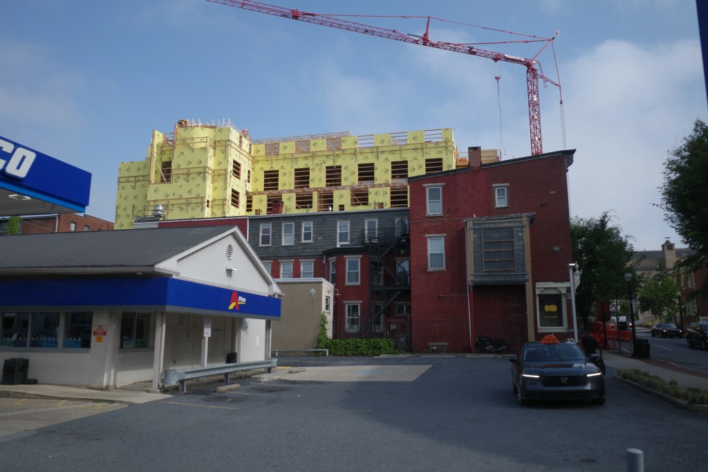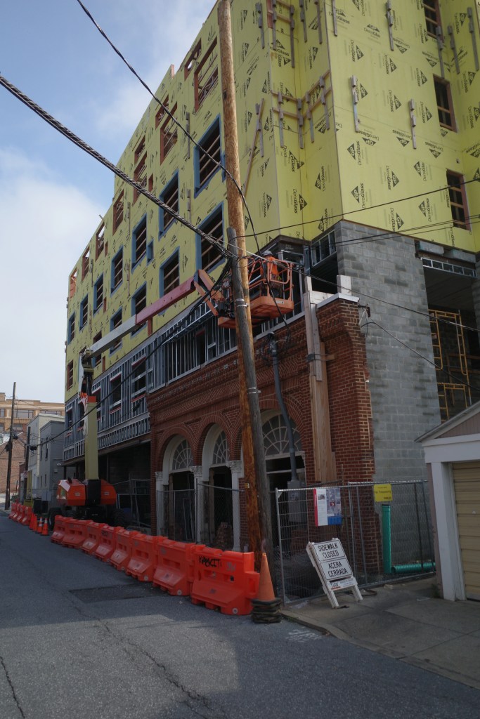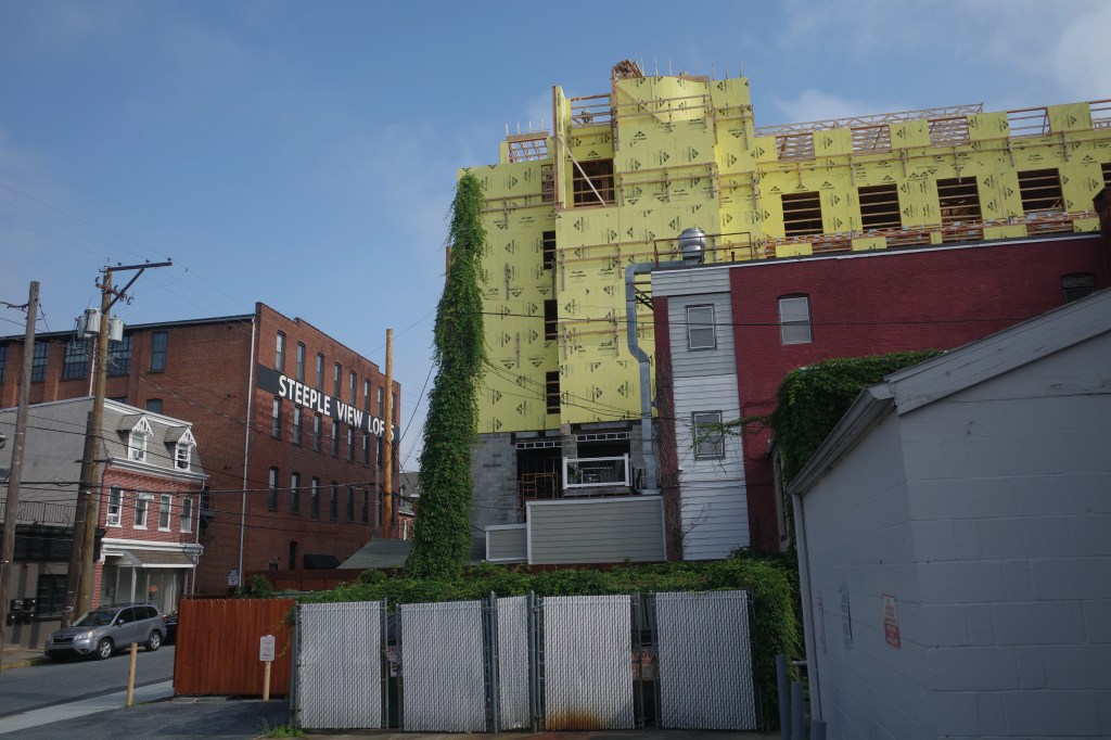 Steeple View Lofts’ steeple views are now obstructed by the new 7-story building.
